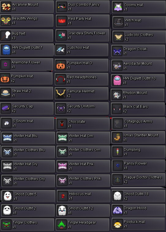 Hello and welcome to my shop! Here you'll find special pokemon, boss pokemon, story teams, mounts, cosmetics and items Take a glance and have a good time! Everything is negotiable, besides the regular items You can reach me via forum PMs or ingame: Sefanne Alternative payment methods Value Coin Capsule(CC) 480k IV Reroll Ticket 600k Nature Reroll Ticket 250k Rare Candy 6k Tip: If you browse these forums via pc, for a better experience; Click the button on the top right corner of your screen named 'Customizer'. Enable 'Fluid Width?' (You have to be in fullscreen). This makes the pokemon much more organized to scroll through. Story Teams Boss Pokemon (@@@@ Work in progress @@@@) Special Pokemon Pvp Pokemon Mounts & Cosmetics Regular items Feel free to say hello to my little friend0 points