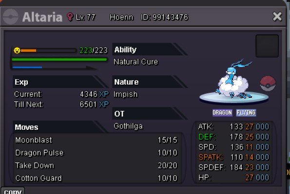 CREDIT FOR THE IDEA OF THE SHOP GOES TO RACHELGARDENER Ingame: Gracee Discord- yoursgracee this is a Joint Shop Payment: Pokedollar Coin Capsule - 480k Reroll Ticket - 700k Nature Reroll Ticket - 350k Notice: 1. This is a SILVER server shop so I will not transfer. 2. You cannot withdraw your offer. Any scam or fake will be reported. 3. I live in the GMT+7 time zone. 4. Price are negotiable. 5. English only. PM me ingame or in forum for further information. PVP SPECIAL FORMS ITEM2 points