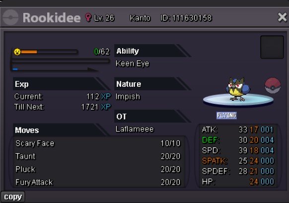 Start Offer: 2m. Min Bid: 100k. Insta: None. Duration: 24 hours after the first bid. Accepted payments: Reroll Ticket: 700k each. Nature Reroll: 350k each. Coin Capsule: 500k each. Pokedollars. Reminders: - If you intend to purchase with an alt account, specify the account alongside your bid. - If a bid is received in the final 15 minutes of the auction, the end point will be delayed by 15 minutes from that bid, and will be delayed by 15 minutes for each new bid thereafter, until the current offer has been held for a full 15 minutes. Contact: IG: Fafouney Discord: fafouney (224141264130408448)2 points