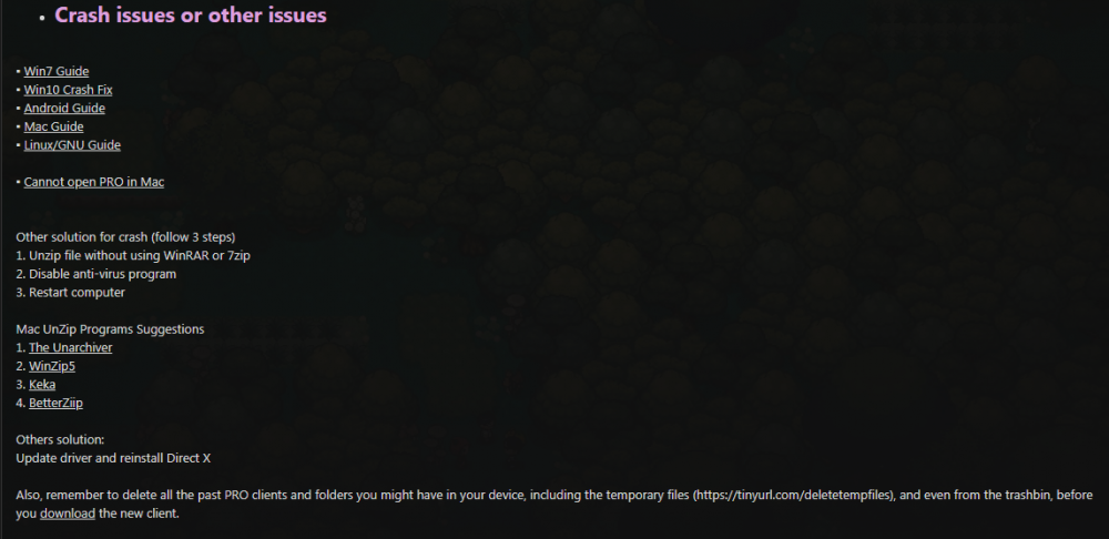 3. Hello, Please try all the steps in > THIS THREAD <, in Crash issues or other issues section: Some other possible solutions are: - Try running the client in Administrator mode - Update your DirectX, Framework and Graphics Card drivers - Add exceptions to PRO in your Antivirus/Windows Defender/Firewall - Try downloading the 64bit client incase you are running the 32 bit client now and vice versa Please let me know if any of this works. Looking forward to your response, until then, Have a nice day!