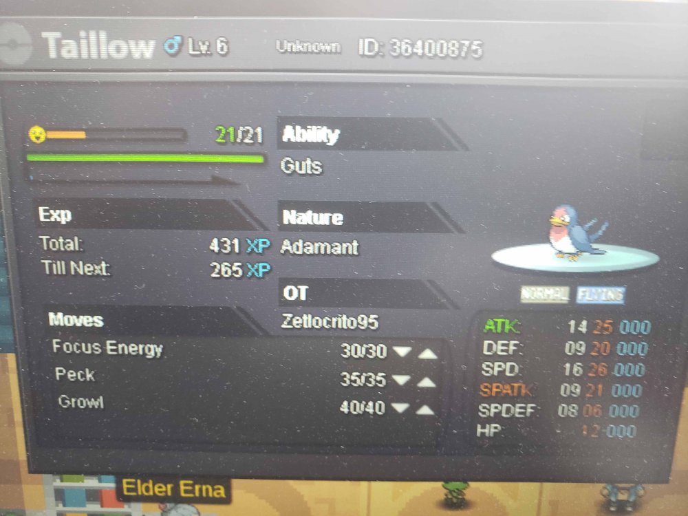 I can confirm that the tailow of the picture already got debugged, but newly caught pokémon in that route are still having those problems. They seem to mess up with the pokémon box too.