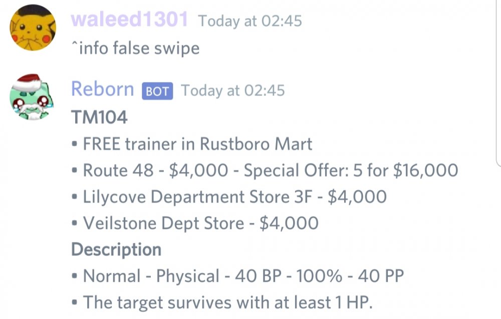 Hello there @SainteBaguette I am not sure if staff will change this. However I can advise you on a new False Swiper Options which will not Die from Take Down. The first one I suggest is Honedge + EVOs, The second is Alolan Marowak, Both these pokémon learn the move False Swipe by TM. The TM can be acquired from here: [spoiler=Locations ] I know this is probably not a reply you are expecting but if staff do not change this, I hope it's a Worthy and Useful alternative, Good luck. -