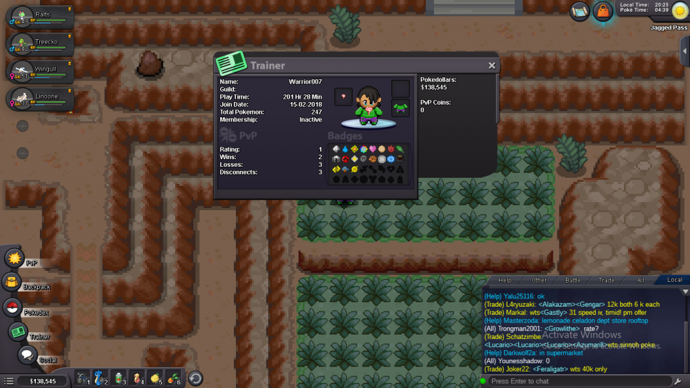 Discord Tag - Warrior007#3915 How many hours on PRO- 201hrs 28mins Progress so far- I'm currently on the 4th badge in Hoenn(at the time of this message) What's your favorite Pokemon available in PRO right now- my Houndoom What's your favorite part about PRO right now- The Intense storyline