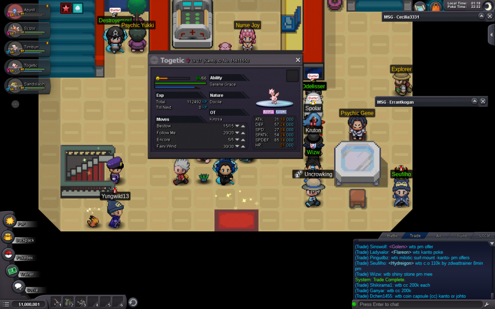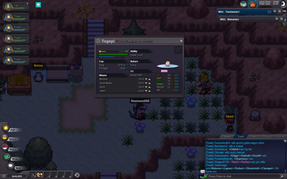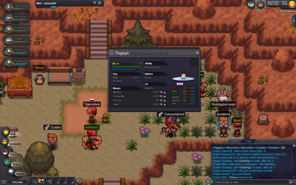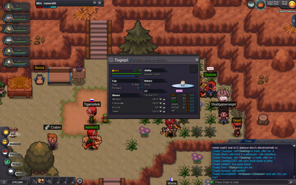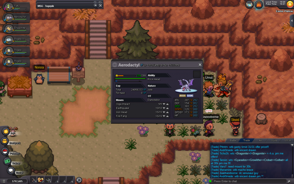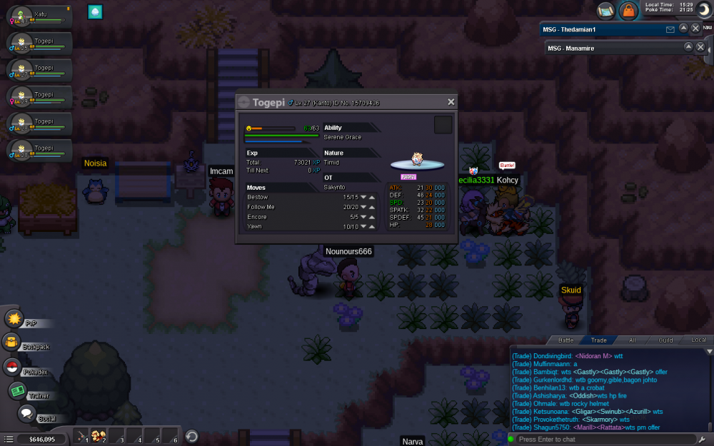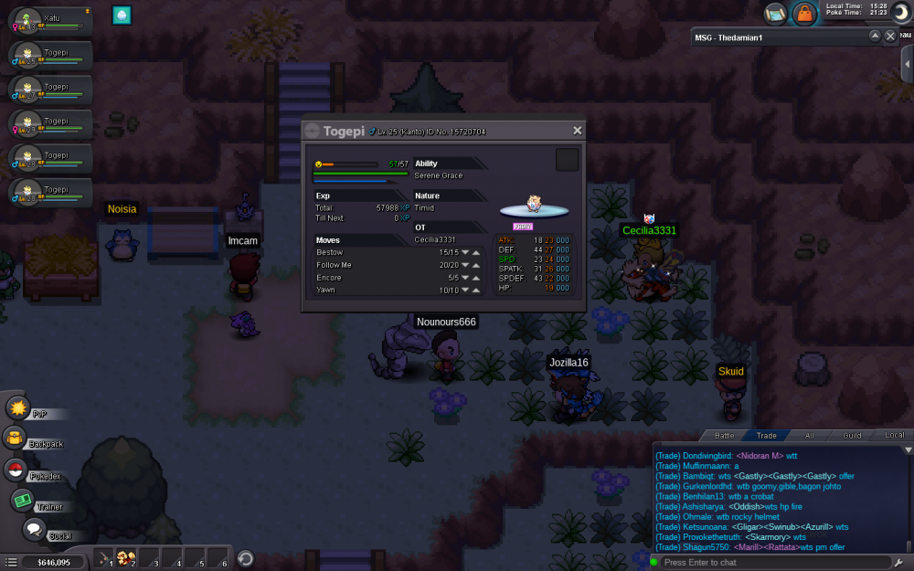 Salut, je cherche une guild dans laquelle ca joue high level , pvp / pve Pseudo dans le jeu : darkstylzor Temps de jeu : 490h Âge : 28 Quelques mots sur vous : tryharder de tout style de jeux Avez-vous Discord (obligatoire) ? : darkstylzor#4038 Où en êtes-vous dans l'aventure ? : dernier stade avant sinooh Quels sont vos objectifs dans le jeu (PVP, farm, collection de PKM) ? : TOUT Pourquoi devrions-nous vous choisir ? je veux devenir le meilleur dresseur de pokemon xD