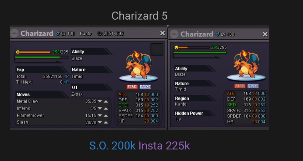Added Shiny dustox - 200k Zubat - 150k Bellossom - 120k Natu - 120k Butterfree - 90k Nidorino - 80k Arbok - 40k Golduck - 40k Graveler - 30k Spinerak - 30k Raticate 2x - 15k Rattata - 15k Christmas Sandshrew 2x - 30k/40k Sandslash 2x - 40k -