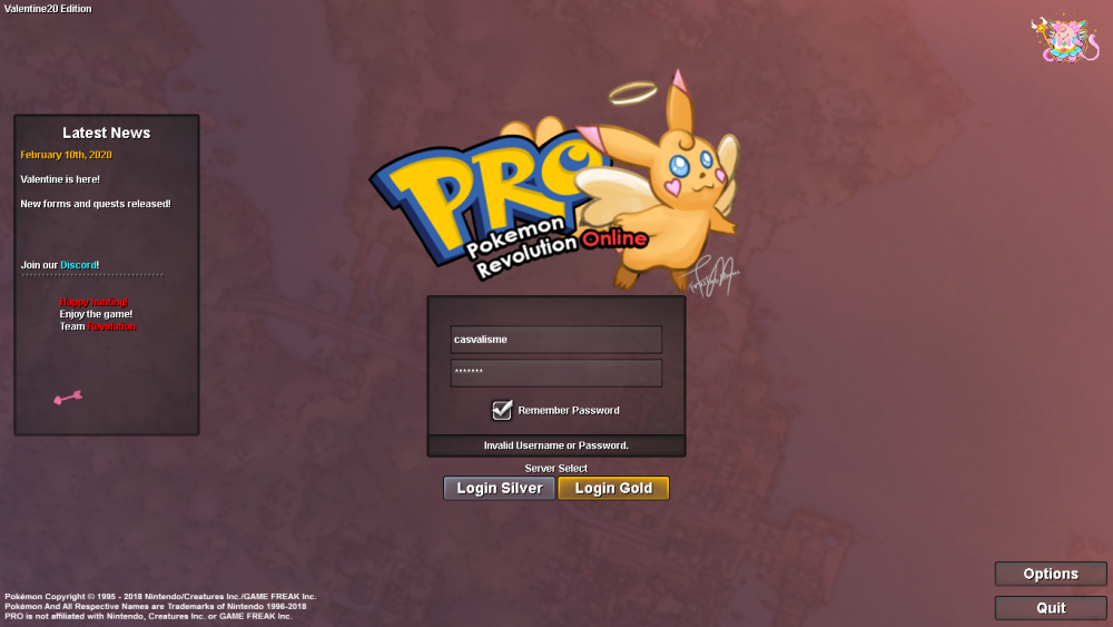 My case, I used to play Pokemon Pro 3 years ago, at that time there were still 4 servers and I had migrated when the server became 2, after a vacuum of 3 years I tried to return recently to play, I have 2 accounts and both of them on the silver server, I try to log in to my account which is the case, the notification is invalid username or password even though I tried to log in to the gold server on the account that failed to log in and it can, is there someone here who can help me? Thanks