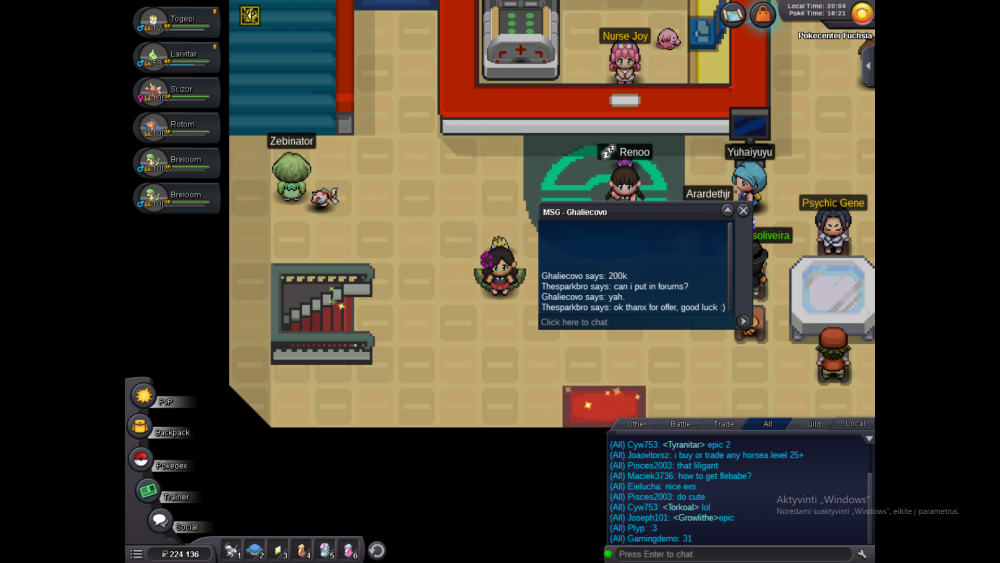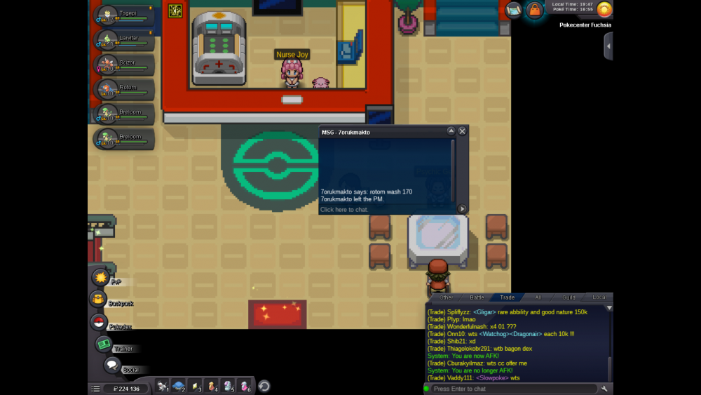i was in vermilion pokecenter. but then i closed the client and go to another game and next morning when i tryed log in i get to start island. when i used rope esscape i back to vermilion pokecenter,