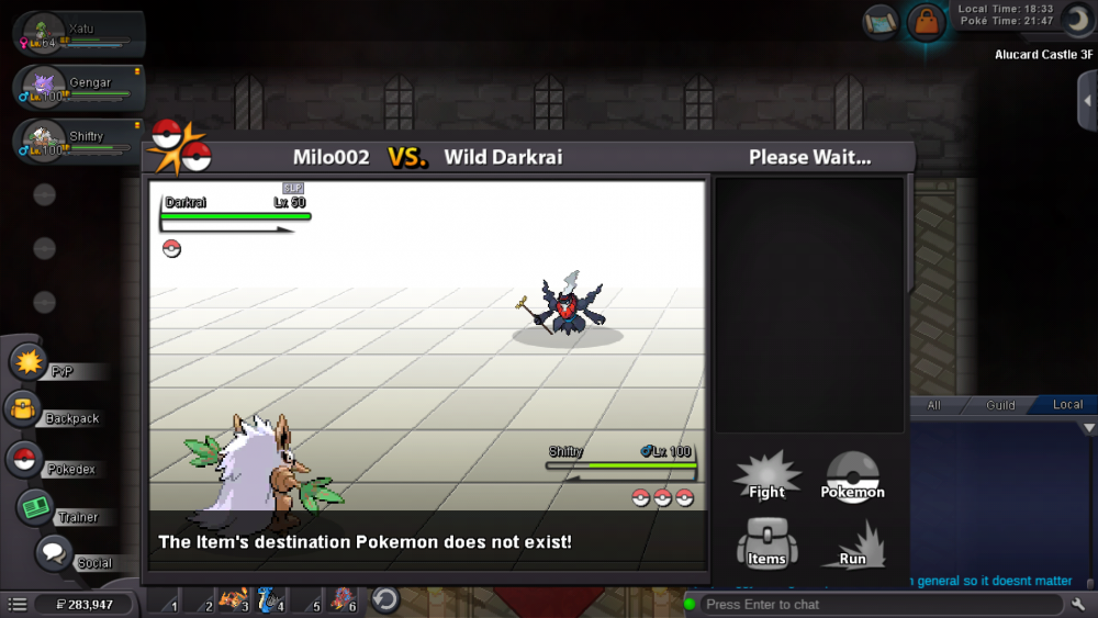 Hi need help please!! :( Last time that I did Darkrai I got a problem and I was not able to catch him. Now that I beat the boss and when again. It was all bug. Mi xatu looked like Gengar and Gengar was shiftree. And there was no sheftree! So everything was a mess. I lost me master ball, 75 normal pokeballs, 11 repeat. Like 3 lure balls. I lost all the pokeballs and again didn't get him... I spent like half an hour trying to catch a nothing I have screenshots to prove it. :(. What can I do? Its not fare :'( in the picture you can see the message that I got when I tried to give xatu a potion. And in the other the shiftree as gengar. Please help me to solve this :/ Thanks!
