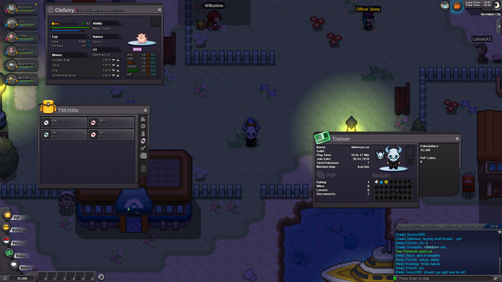 2. I've just started PRO and have enjoyed all the way, but there seems to be a glitch. As I defeated the 3rd gym that gives flash, but when I taught it to my clafairy it showed until I logged back in. Not only was my flash HM gone but so was my Dig and Flash and clafairy didn't seem to have the move. Gold server.