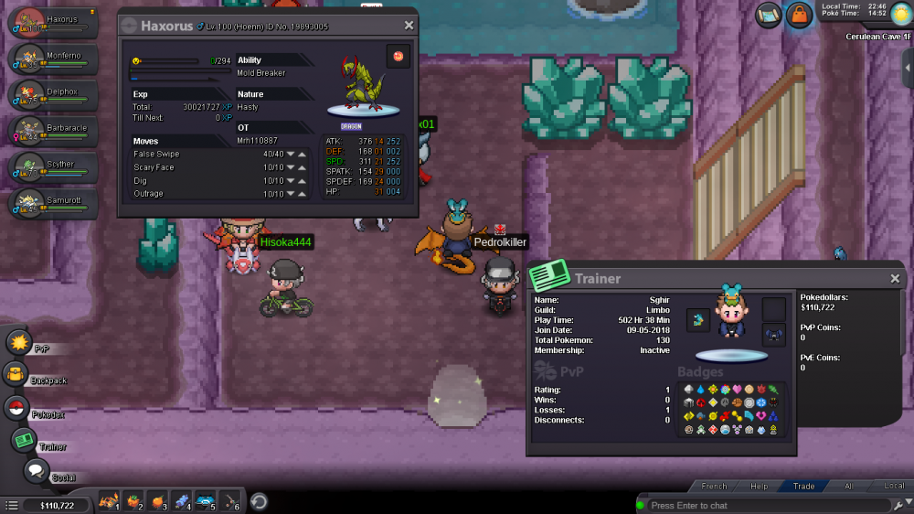 I think i loacated where the issue is, and i'll try to fix that by myself, since the problem isn't coming from you or from the client. Thank you very much. I think i'll get reported now, because i'll have to cancel the auction for my pokemon in trade forum, gold server. Can you please talk to the trade forum coordinators please ?
