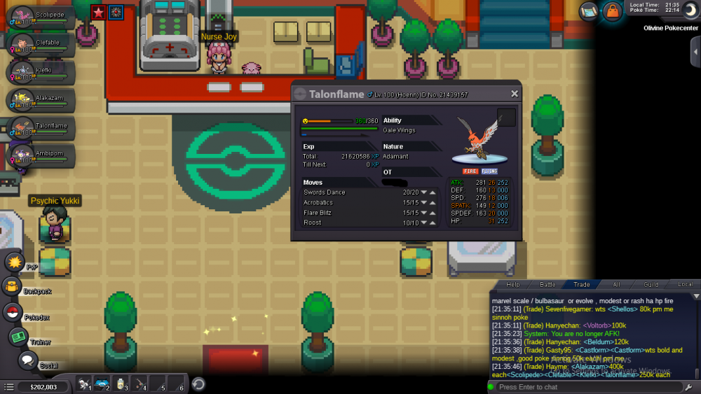 scolipede=250k talonflame=250k clefable=250k klefki=250k alakazam=500k ambipom=400k weavile=350k donphan=500k goodra=500k comment here or pm me ingame ign:hayme thank you!^^