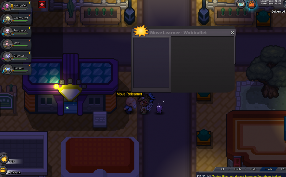 Hello I try to use move relearner and pre evo move tutor but it shows no moves on wobbuffet only i dont know why i tried to relog too. Thanks for the respond!