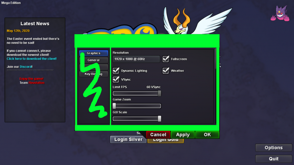 Also ran into this bug, changed to the lowest resolution in window mode and now cannot accept changes made in options i made the low resolution change on a 42" screen and have tried a smaller monitor and also changed dpi settings with no luck any help is much appreciated.