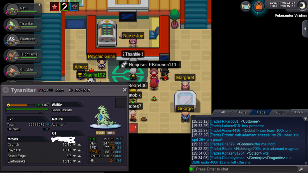 Sono molto contento perchè in gilda sono entrate già molte persone (attualmente siamo piu di 40 italiani in gilda) e ho intenzione di invitarvi perchè ho in mente cose carine da poter fare insieme con i membri della gilda. So che può sembrarvi stupido ma avevo pensato ad un minigioco che, con l'aiuto di altri allenatori in gilda. stiamo migliorando giorno dopo giorno e secondo me non ve ne pentirete se decidete di partecipare.