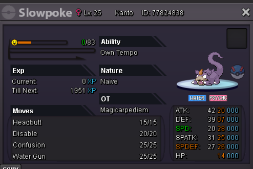 Carpe Diem CLODSIRE & WOOPER: Sableye: TRAINED & UNTRAINED 50K EACH LVL 100 100K EACH OR 3 FOR 200K PVP + EPIC ONES: FORMS EVENT : 40K EACH OR 3 FOR 100K FORMS EVENT epic & rare : Misc Items: