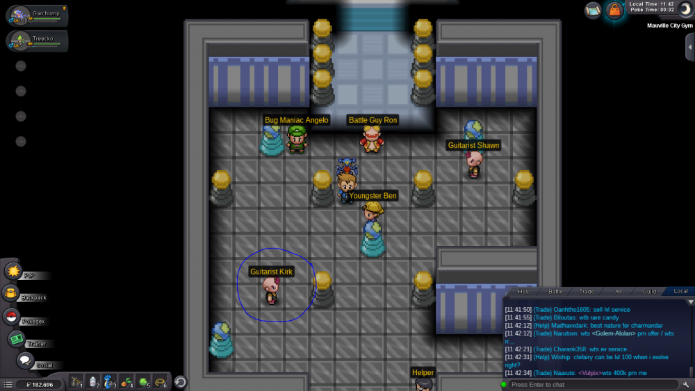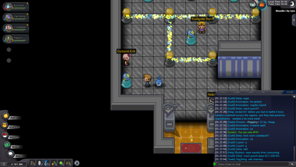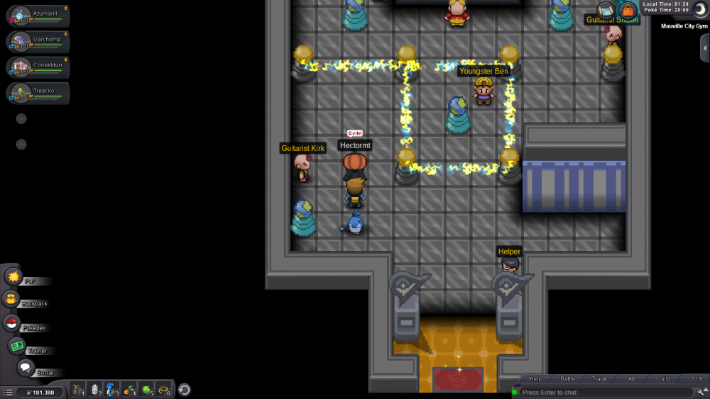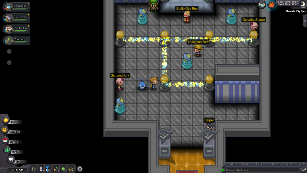 Dear Staff, I am currently doing the 2nd story run for my 4th account (IGN: Backiii4). I ended up being in Hoenn in the Mauville City Gym at which I ran into a problem related to getting the right combination to be able to battle the gym leader. I can only access one of the combination-changing pillars, though I am not able to access the other ones and thus stuck in this gym. I will show you now what it looks like in screenshots I took. As you can see I am only able to access one of these combination-changing pillars. I already tried to restart the client and left and re-entered the building many times but it all didn't work. Though I might know why I have this issue. I'll try to explain it as good as I can: When I created my 4th account I did the 1st story run on GOLD and after I finished all regions I transfered the data acquired on GOLD (with all regions) to SILVER. My SILVER data (with no regions completed) then got transfered to GOLD and I started doing the story run there again. While doing the story then on GOLD AGAIN I wondered why I didn't have to battle some trainers that you weren't able to skip. I think that the data I acquired on the 1st story run on GOLD is still bound to the GOLD server and this is why I am now stuck in this gym. This is my own theory, I don't know if this could possibly be true or if it is just complete nonsense. I am really looking forward to hearing from you soon.