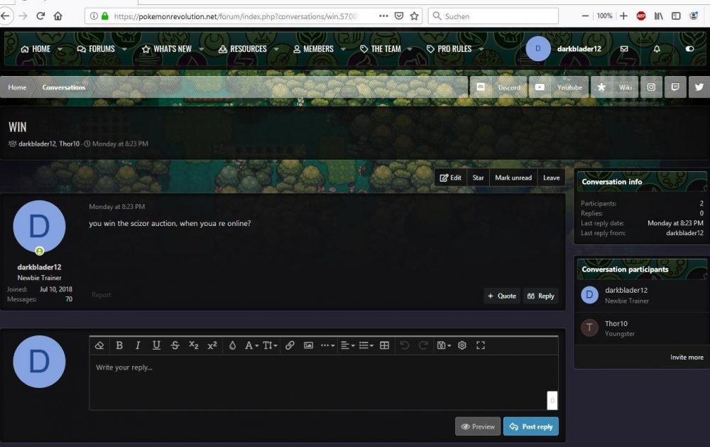 I never met him at the same time ingame and try to pm him, but the winner don't answer me. I keep this scizor