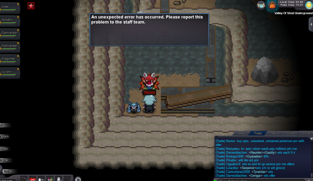 10. something wrong here clearly can anyone fi this bug xd don't wana waste my 5k for trainer valley.issue is I cant fight steven boss because of some bug hope u can fix it