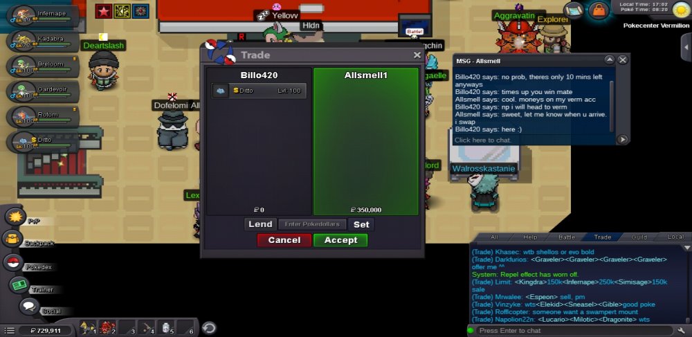 Starting Offer: 300k, Minimum Upbid: 50k, Insta Price: Undecided, (insta based on popularity) Auction Time: 12 hours from first bid. (Note: if you start the auction and do not get a prompt reply, its safe to assume the auction has started from when the offer was posted) Ditto is tier 6, level 100 with 69 EVs in all stats! Good luck and happy bidding