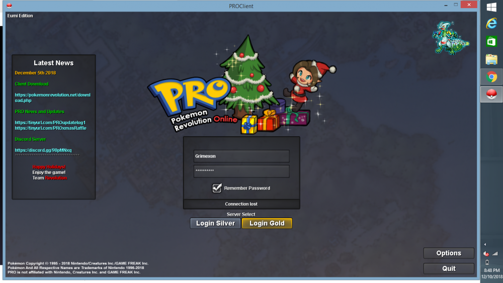 Hey! I'm having issues in logging into Silver server(my main server).When i press "Login Silver" the message of "logging in" shows but then suddenly changes to "Conncetion lost".
