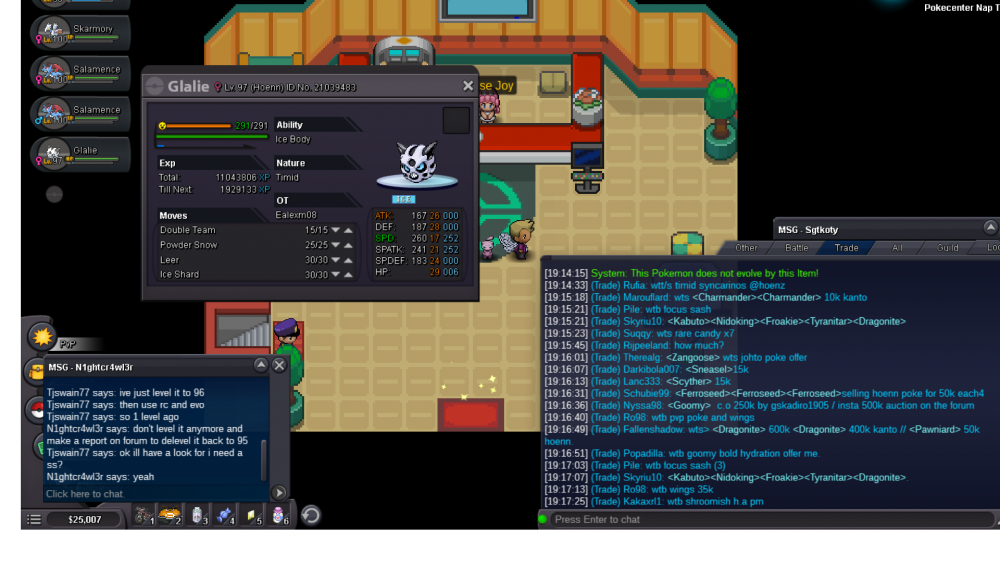 Hi i would like to de-level my glalie, i accidentally evolved it at 96-97 and i would like to de-level so it turns back into snorunt? then i can evolve into froslass if thats possible. Any help or information would be great. SERVER : GOLD IN GAME NAME: TJSWAIN77 pokemon ID : linked in attachments