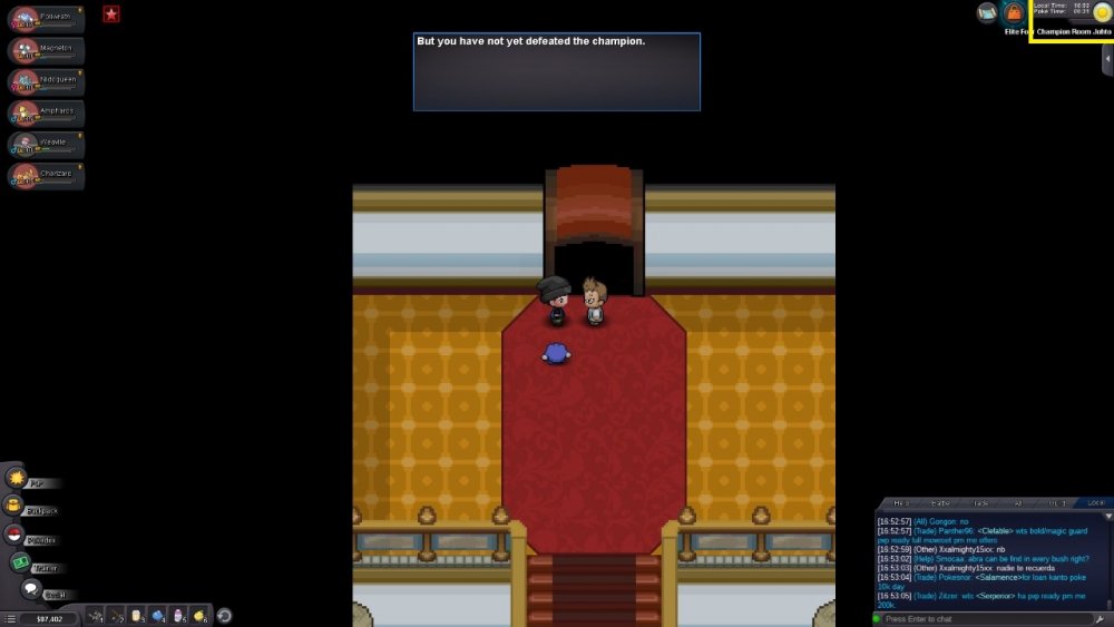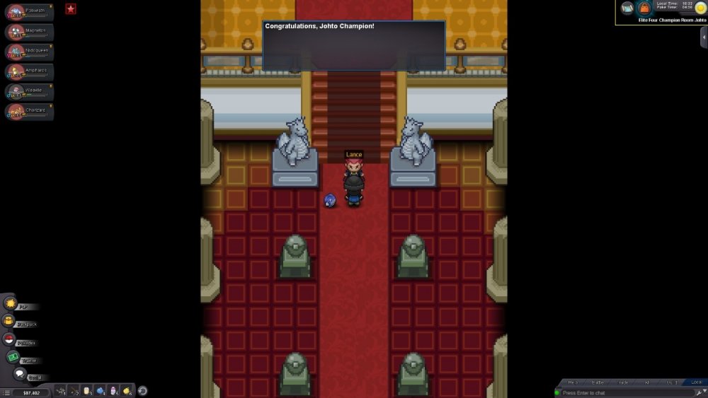 2. (Please check Screnshots with timestamps as proofs) Hello, After defeating Johto's E4 Lance I went to celebrate with a friend on discord. Minutes later I got back to the game and was at login screen, possibly disconected for inactivity which is completly normal. However, when I got back to the game it says I didnt defeat him. (?) I've spent time, pokedollars, and effort to achieve the victory, please could you take a look at this matter? Many thanks!