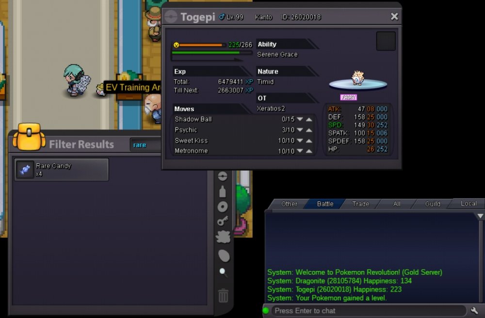 8. i have a togepi it was 97 and happiness 223 i used rare candy to get the proc to evolve it did not. then i got suggested to restart in client and use candy again. really didnot work .here is proof . i lvled after checking happiness