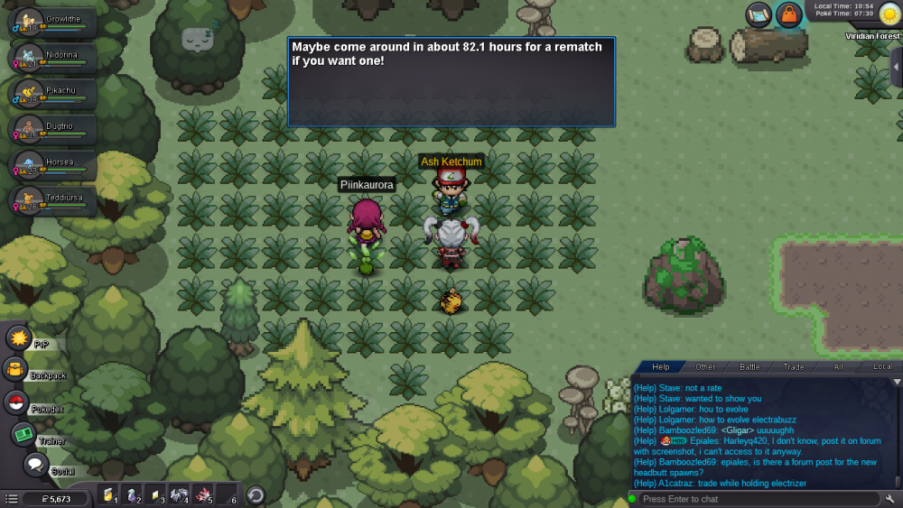 3. so the other day me and my fiance were in Viridian and both went up against Ash. today after forgetting all about him there, we go to try again. he was able to battle Ash without issues ( and with higher lvl pokes, beat him flawlessly ) but yet when i tried i was told i had to wait 82.21671 hours before i was able to fight him again! ( the screenshot shows a bit less, as every time i spoke with him the numbers kept going down ) so thats well over 3 days to wait when we fought him around the same time, same day a couple days ago!