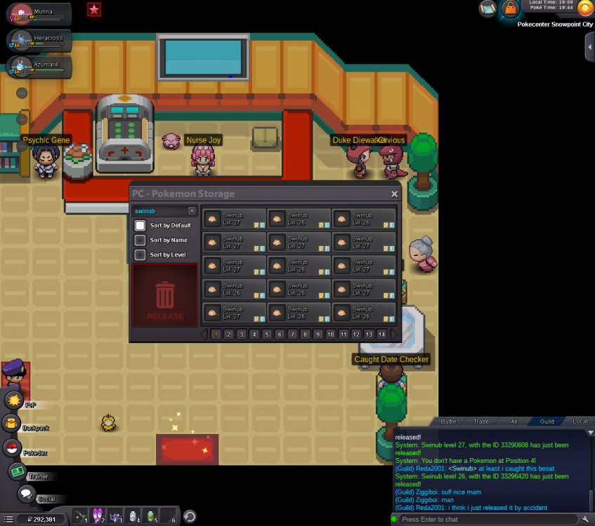 so my swinub is in my party and i move my mouse to another winub to get released but i guess it dragged or something and it released my swinub.. pls help it had really good ivs :((( The id is in the guild chat if you can see it