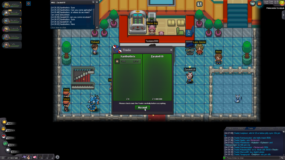Hi, i'd like to auction the V skin Nidoran which is usable in my opinion in the pvp, take a look and decide if you wanna try your luck in the auction, gl! Auction will last 24hours after first bid So... Start offer: 700k Min bid: 50k Insta: 1,5m cc: 400k ms:15d 200k bmc:150k ( I can train him with ev's and lvl up for bonus 150k)