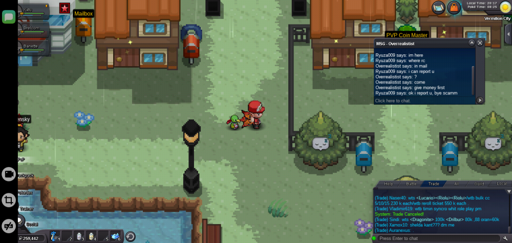 because he yesterday say want to sell 30 rc with price 152k, but he say money first and rare candy he can will send to mail, he thing i stupid,