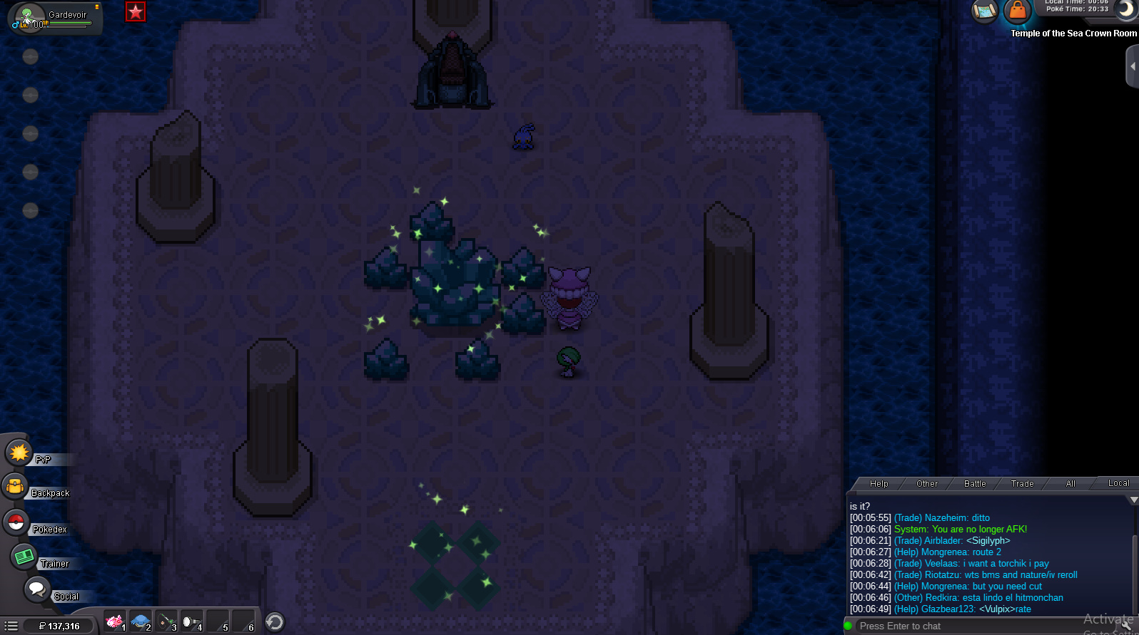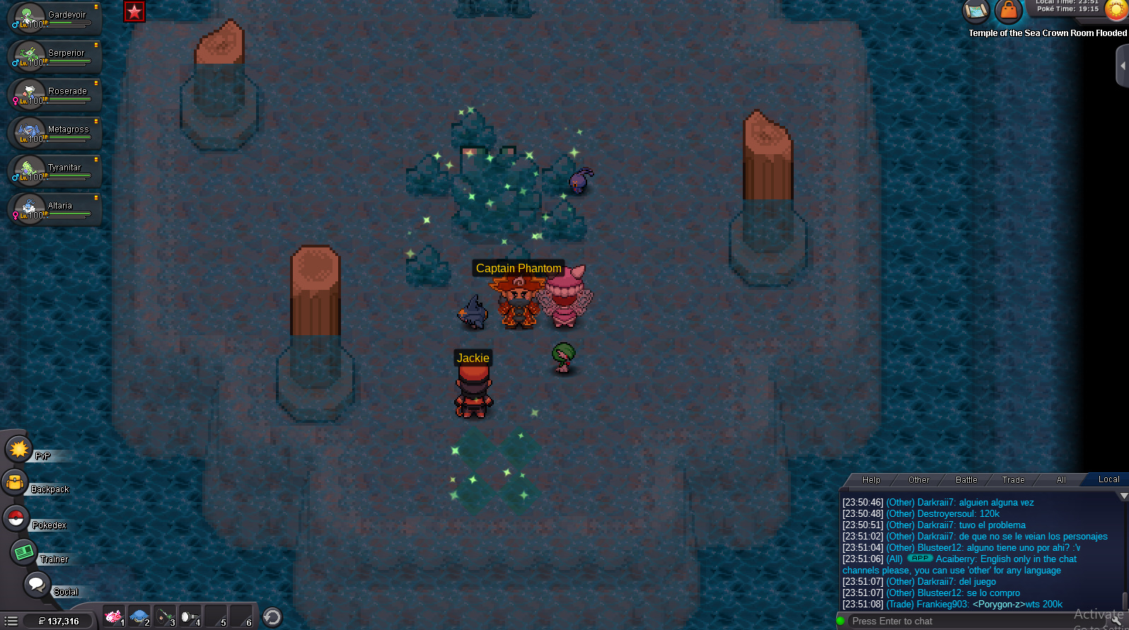 1. So after challenging captain i only got to see his first pokemon it hit me once then the server crashed and it was back up i was still in the room i saw gardevoirs health lowered a little so i wanted to get a potion before i went back to fight how ever i went to the hall and the place was becoming flooded meaning i got a free pass on the captain didn't need to fight him to win i am sending this since this bug could be abused to avoid the fight and i just wanted admins or mods to know so they can fix this i didn't have more screen shots cause i didn't expect this to happen im sorry