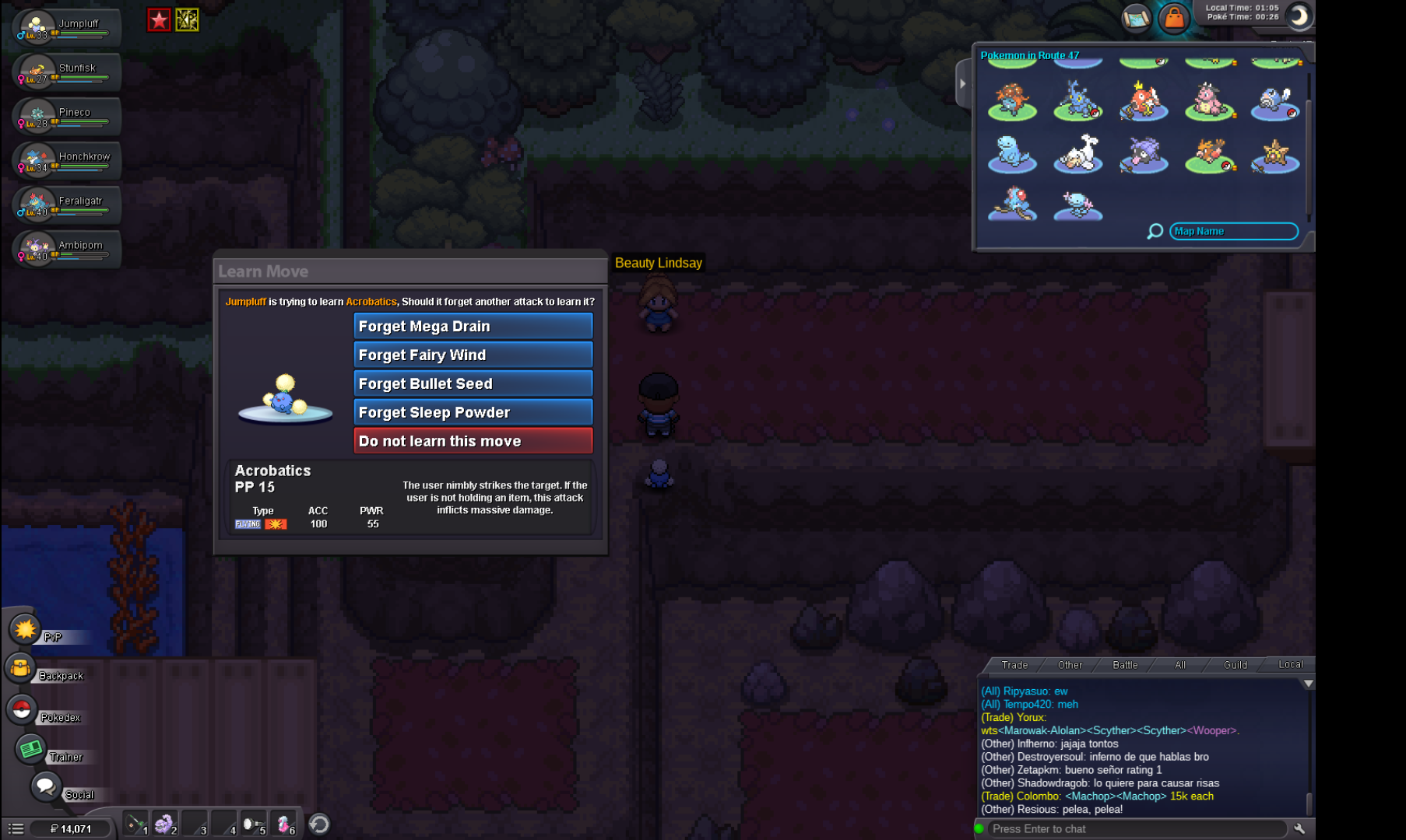 I'm learning a move on my Jumpluff and when I try the server went down. when I rejoined I'm stuck in the learn move window and cant learn the move plz help