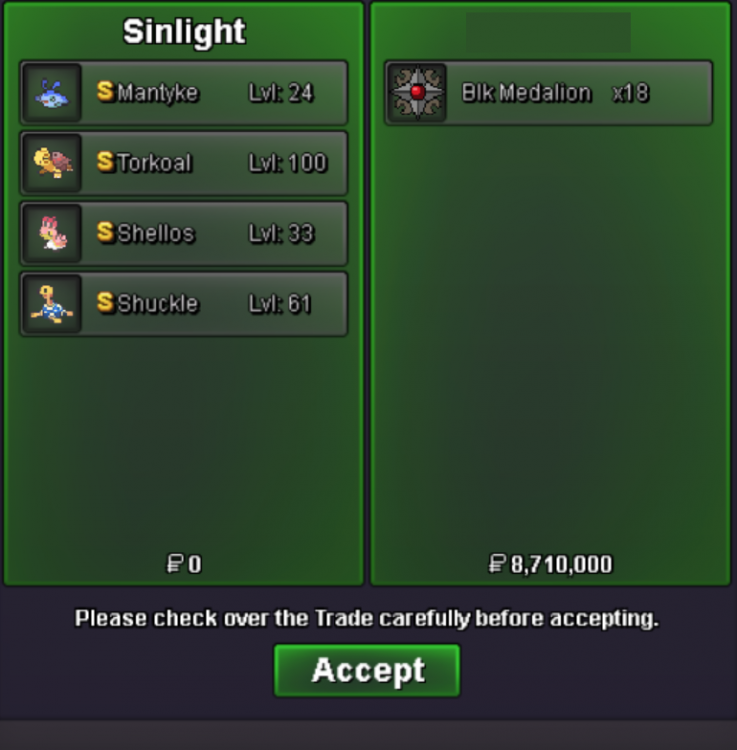 NOTICE: I'm gonna take another break now after finally getting my 1st OT shiny rare, so shop won't have any updates in a while ^^ Everything here is still up for sell, so feel free to pm me in Discord at Sin#6417 for any inquiry. Have a great time in the game! o/ WELCOME TO SIN'S SHINY & EVENT BOUTIQUE *** I'm finding new home for some of my shinies Hope you can find the sparkling Poke that will make you smile here CROSS-SERVER DELIVERY HOW TO CONTACT HOW TO PAY SHINY AND EVENT POKE 50K - 150K (N/A) 200K - 1M 1M - 2M (N/A) 2M - 5M 5M - BEYOND Until next time,
