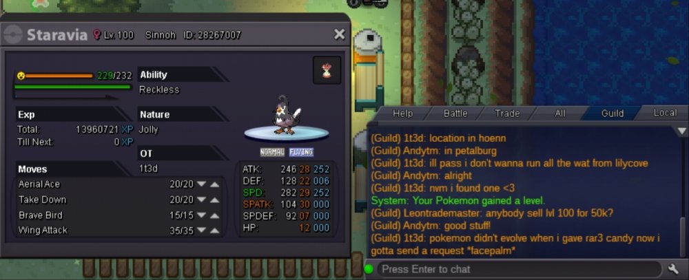 1. My ingame name is 1t3d My server is Gold After evolving my staravia to lv 100 using a Rare Candy the pokemon did not suggest a evolution I have had this issue before with some pokemon at lower Lvs..... Please Help Delevel back to Lv 99 would be much appreciated! If there is anything I am also not explaining in the post please let me know Thank you! and sorry for updating this post 3x.