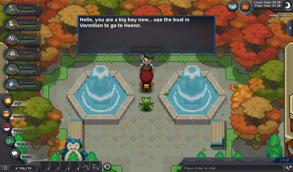 I have a problem with the silver game server my name in the game is Lucazar I was doing elite four in hoenn then I went out and when I came back he took me back to start on kanto. I tried both Vermillion and victory road kanto but it doesn't make me go back to hoenn how do I do it?
