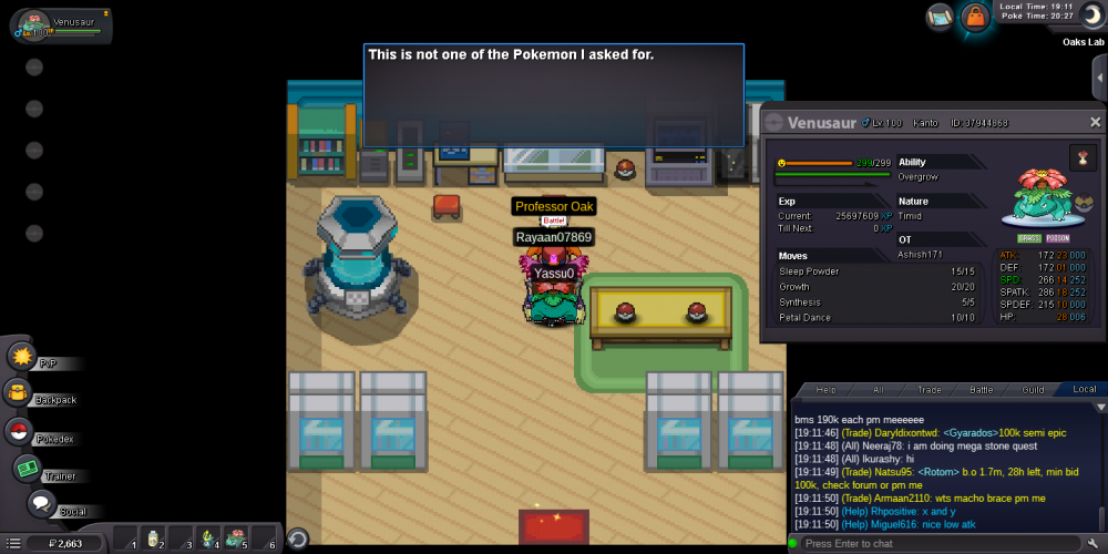 And I evolved it into venusaur but I go back to oak it tall that (show in pic)