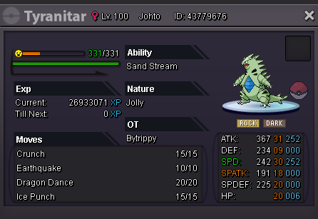 Tyranitar Jolly 31-30 for Sale 400k Sold in game can close