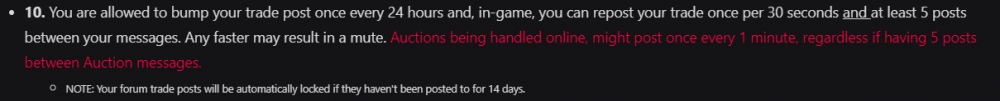 @Mettz95 Please read the rules about auctions: https://pokemonrevolution.net/forum/topic/119709-url Next time overbumping your auction will result in a punishment. Sincerly Hawluchaa.