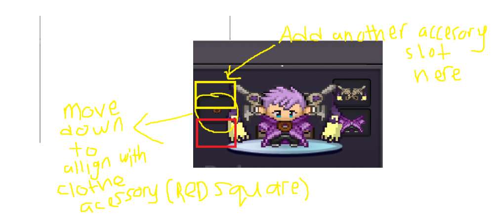 Hello! I would like to suggest an extra (maybe even 2) accessory slot provided for each players. 3 accessory slot just isn't enough especially for the accessory that is used for Mask (eg: Sabito Mask), Caps or any kind of hats and food (eg: lollipop obtainable from the lunch mystery box) because each of those accessory take out the 1 accessory slot and there are so many accessories in the game that are available for the players to get but can't really wear them because if you wear the Sabito Mask you can't eat a Lollipop FOR REFERENCE As shown in the picture, if I wear the Glacea flower accessory I can't eat a Lollipop anymore and both of those accessory (Lollipop and Glacea Flower) appear differently when you wear/eat them, Glacea flower appear on your hair while the Lollipop appear on the position of the character's mouth so I don't get why i can't wear both of them if they appear in different position on the character. I used a lot of time and effort to draw this sketch on where the extra accessory slot can be implemented: SUCH CREATIVITY MUCH WOW I just want to be eating my donut (add more DONUT accessories plz ) and be wearing a hat while enjoying the bright sunny day in PRO. Thank you.