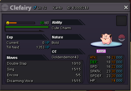 2. Hey! Welcome to my shop where I sell whatever seems good to me. Rule: I will report all fake offers so don't waste mine or your time. Accept: Pokedollars > IV Reroll:750k > Nature Reroll: 375k > Coin Capsule: 370k > Rare Candy: 8k [All Pokemons Negotiable] Contact me on Discord: Goldendemon43#4343 or PM me IGN: Goldendemon43 Untrained Pokes 10-40k EV Trained Pokes