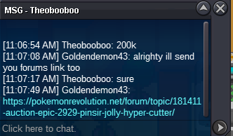 6. Bought by Hanine for 800k Insta = 800k bought by Hanine Auction Ended Accepted payments: Pokedollars cc = 350k rr = 750k Rare candy = 7k (edit) Master Ball = 40k (edit) Discord = Goldendemon43#4343
