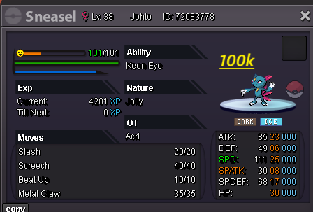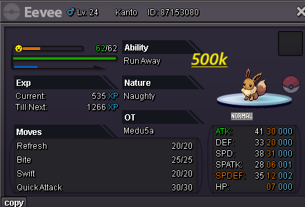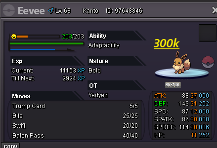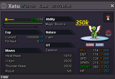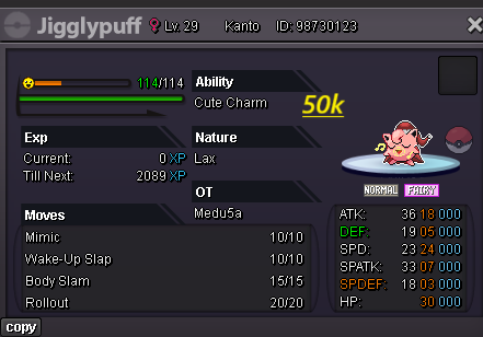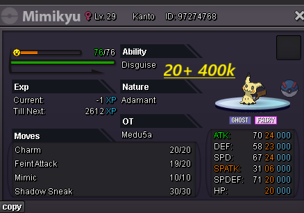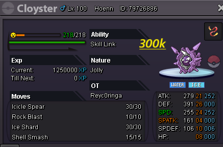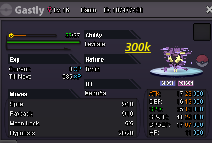 Hello evryone! I am back , no like i was before but atleast i will play 3-4 days per week Hope you trust me like before Last time you help me and i make 200m at 4 months Hope now the same happend! For few hours after the ReOpen all pokes are nego If you have buy again with me you know i am open for nego and trades Happy i am back hope find what you need here! Gl hf Accept payments Cash CC : 480k ea Rc : 6k ea Untrained pokes Trained Pokes SHINY/EVENT Pokes Cosmetics
