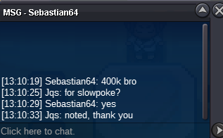 Start: 50k Min raise: 10k insta: N/A End point: 40 hours after starting bid is met https://www.tickcounter.com/countdown/4800913/my-countdown Accepted payments: Pokedollars CC(350k) Nature RR (250k) IV RR (500k) 15-minute bid extension always applies at the end if necessary. IGN: Jqs Discord: ju.les