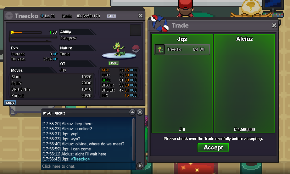 Start: 1m Min Raise: 100k Insta: 10m https://www.tickcounter.com/countdown/4605841/hp-fire-treecko Accepted payments: Pokedollars CC(350k) Nature RR (250k) IV RR (500k) End Point: 72h after first bid 15-minute bid extension applies at the end if necessary. IGN: Jqs Discord: ju.les