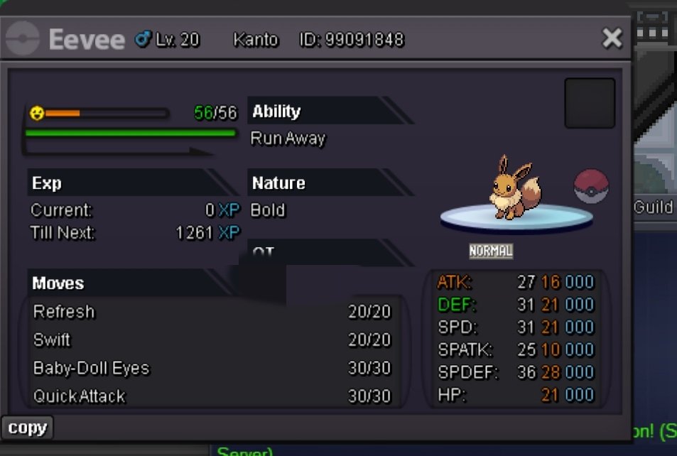 Auction Details: Start Price:10k End Point: 12 hours (after start price is met) no insta Minimum Raise: 10k Accepted Payments: Pokedollars, Coin Capsules (x1 Coin Capsule = 400k), IV Reroll Tickets (x1 IV Reroll Ticket = 500k) Start Price: 100k End Point: 12 hours (after start price is met) no insta Minimum Raise: 50k Accepted Payments: Pokedollars, Coin Capsules (x1 Coin Capsule = 400k), IV Reroll Tickets (x1 IV Reroll Ticket = 500k)