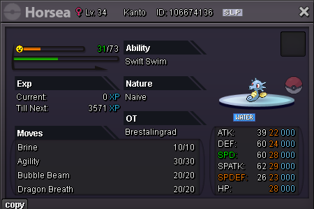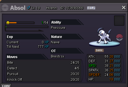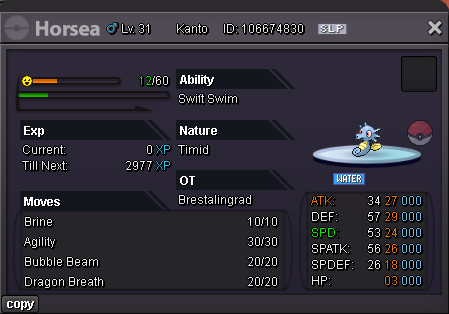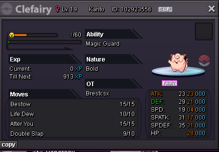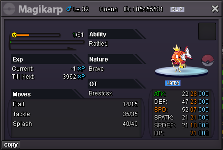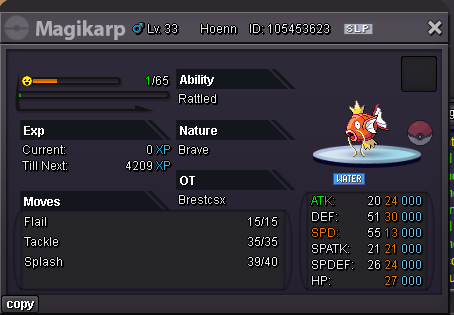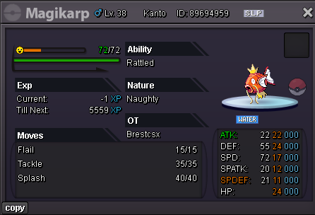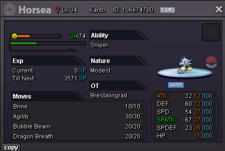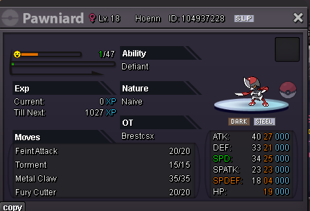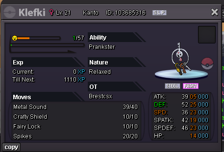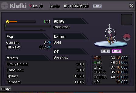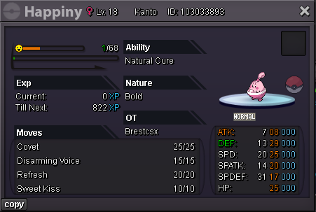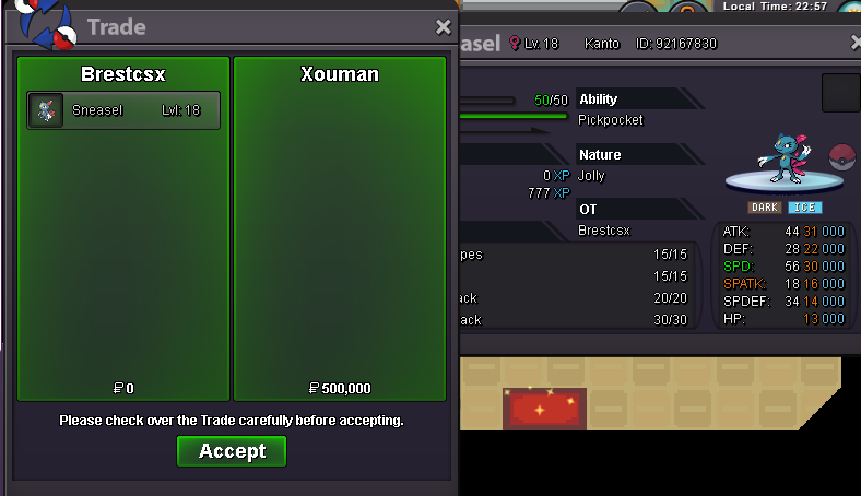 Hello Silver Server, Welcome to my shop ! The Rules - Only Silver Server - Scam try or fake offers are reported - Only take Poke$, Nature Rerolls (250k), Coin Capsules (400k) and IV's reroll (500k) - Accept negotiations - Untrained pokemons are not lvl 100, no EV and no moveset if not precised - Trained pokemons are lvl 100, with EV and moveset if nothing precised The Instructions PM me on my main account Brestcsx or on Discord (.brestcsx) with the name of the pokemon you want, the category, the number associated and/or the price (or screenshot). Meet my shop account Brestalingrad in Vermillon City Lets trade ! The Shop Untrained Pokemons : PvE Pokemons PvP Pokemons (Pokemons are grouped with all their evolutionnary line so you can ctrl+f anything and quickly see if it, or one of his evo, is here) Trained Pokemons : (unavailable for now) PvE Pokemons PvP Pokemons Trade Completed : .