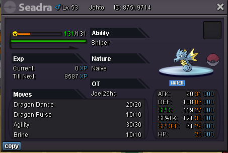 Seadra Johto atk 26 spd 27 spatk 30 spdef 29 hp 30