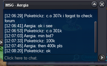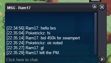 •Start Price: 100k •Min bid : 50k insta 1m •Time Auction : 48 hours after first bid ACCEPT: - Pokedollar -cc (500k) - IV Reroll (500k) - Nature Reroll (250k)