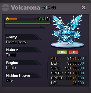 Start price: 5m Min bid: 200k Insta price: 25m Accept payments: cc 500k ea, rr 700k each, nrr 350k each, rc 6k each Auction end time: Oct. 19th 17:00 P.M. GMT+0, follow 15mins rule End time check:https://www.tickcounter.com/countdown/8421132/anniversary-blue-volcarona